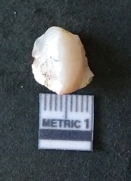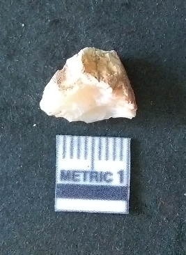 | Description / विवरण | The quartz fragment shows prominent flaks scars and sharp flaked ends as a result of flaking. The piece is translucent white and shows cryptocrystalline matrix. |