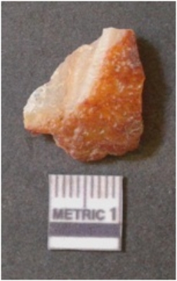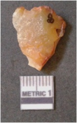 | Description / विवरण | It is chalcedony flake, translucent in appearance. The piece shows sharp pointed ends and flake scars on the surface as a result of flaking. The piece shows a bulb of percussion. |