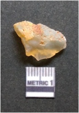 | Description / विवरण | It is chalcedony flake, translucent in appearance. The piece shows sharp pointed ends and flake scars on the surface as a result of flaking. The piece shows a bulb of percussion. |