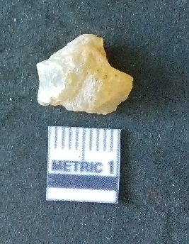 | Description / विवरण | The chalcedony flake is pale yellow in color. Translucent in appurtenance. The piece is shows sharp pointed ends and flake scars on the surface. As a result of flaking. |