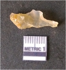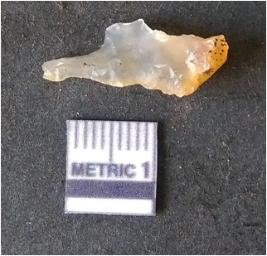 | Description / विवरण | It is chalcedony flake. Translucent in appurtenance. The piece is shows sharp pointed ends and flake scars on the surface. As a result of flaking. |