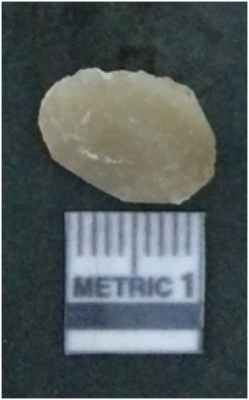| Description / विवरण | It is chalcedony flake, translucent in appearance. The piece shows sharp pointed ends and flake scars on the surface as a result of flaking. The piece shows a bulb of percussion. |