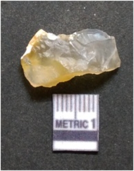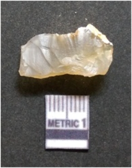 | Description / विवरण | It is chalcedony flake, translucent in appearance. The piece shows sharp pointed ends and flake scars on the surface as a result of flaking. The piece shows a bulb of percussion. |