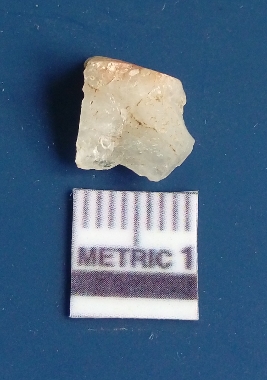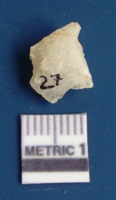 | Description / विवरण | The quartz flake has sharp flaked edges and pointed ends as a result of flaking. The piece is semi-transparent in nature with irregular fracture pattern. The piece is roughly triangular in shape and has a prominent bulb of percussion. |