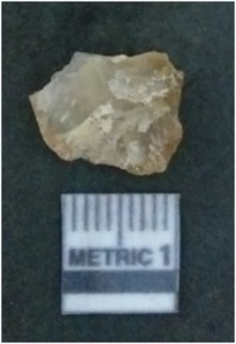| Description / विवरण | It is chalcedony flake, translucent in appearance. The piece shows sharp pointed ends and flake scars on the surface as a result of flaking. The piece shows a bulb of percussion. |