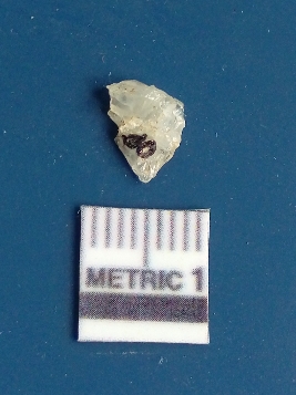 | Description / विवरण | The quartz flake has sharp flaked edges and pointed ends as a result of flaking. The piece is semi-transparent in nature with irregular fracture pattern. The piece is roughly triangular in shape and has a prominent bulb of percussion. |