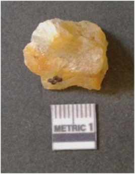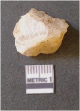 | Description / विवरण | It is chalcedony flake, translucent in appearance. The piece shows sharp pointed ends and flake scars on the surface as a result of flaking. The piece shows a bulb of percussion. |