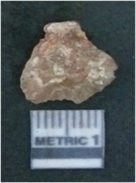 | Description / विवरण | It is chalcedony flake, translucent in appearance. The piece shows sharp pointed ends and flake scars on the surface as a result of flaking. The piece shows a bulb of percussion. |