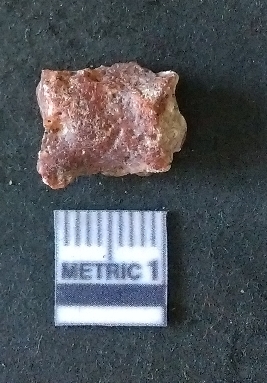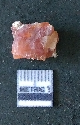 | Description / विवरण | The carnelian flake is reddish in color, with sharp flakes edges and a small bulb of percussion owing to knapping activity. |