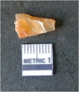 | Description / विवरण | It is chalcedony flake. Translucent in appurtenance. The piece is shows sharp pointed ends and flake scars on the surface. As a result of flaking. |
