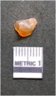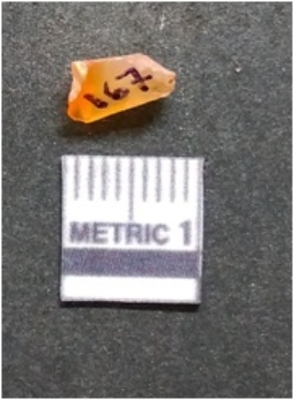 | Description / विवरण | It is chalcedony flake, translucent in appearance. The piece shows sharp pointed ends and flake scars on the surface as a result of flaking. The piece shows a bulb of percussion. |
