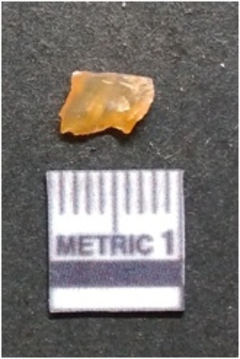 | Description / विवरण | It is chalcedony flake, translucent in appearance. The piece shows sharp pointed ends and flake scars on the surface as a result of flaking. The piece shows a bulb of percussion. |