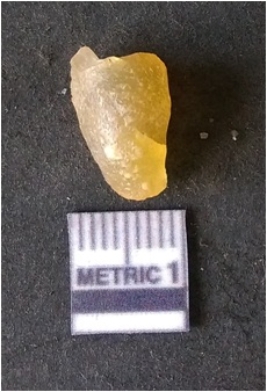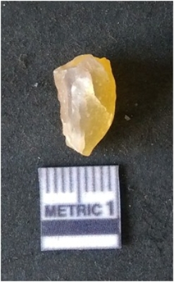 | Description / विवरण | It is chalcedony flake. Translucent in appurtenance. The piece is shows sharp pointed ends and flake scars on the surface. As a result of flaking. |