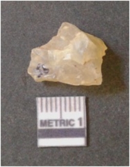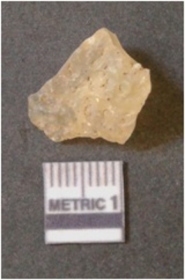 | Description / विवरण | It is chalcedony flake, translucent in appearance. The piece shows sharp pointed ends and flake scars on the surface as a result of flaking. The piece shows a bulb of percussion. |