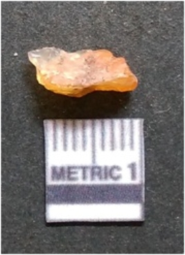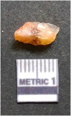 | Description / विवरण | It is chalcedony flake, translucent in appearance. The piece shows sharp pointed ends and flake scars on the surface as a result of flaking. The piece shows a bulb of percussion. |