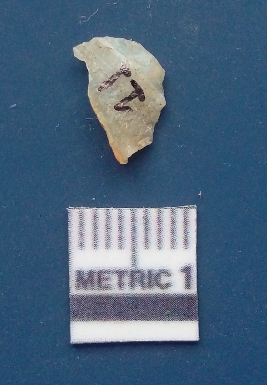 | Description / विवरण | The quartz flake has sharp flaked edges and pointed ends as a result of flaking. The piece is semi-transparent in nature with irregular fracture pattern. The piece is roughly triangular in shape and has a prominent bulb of percussion. |