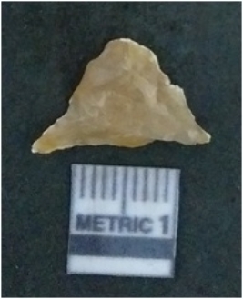 | Description / विवरण | It is chalcedony flake, translucent in appearance. The piece shows sharp pointed ends and flake scars on the surface as a result of flaking. The piece shows a bulb of percussion. |