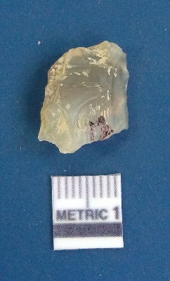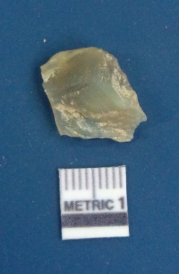| Description / विवरण | The agate piece is translucent in appurtenance, with angular flaked edges and a bulb of percussion. The piece shows flake scars on the surface. |
