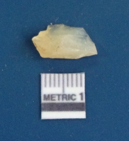 | Description / विवरण | It is chalcedony flake, translucent in appearance. The piece shows sharp pointed ends and flake scars on the surface as a result of flaking. The piece shows a bulb of percussion. |