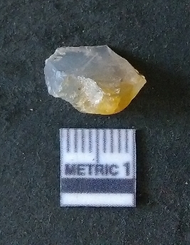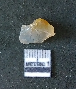 | Description / विवरण | The chalcedony flake is pale yellow in color. Translucent in appurtenance. The piece is shows sharp pointed ends and flake scars on the surface. As a result of flaking. |