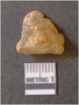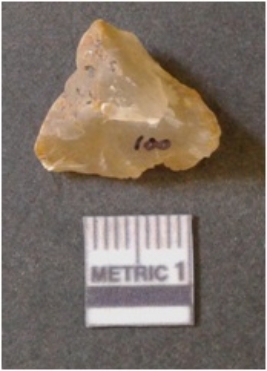 | Description / विवरण | It is chalcedony flake, translucent in appearance. The piece shows sharp pointed ends and flake scars on the surface as a result of flaking. The piece shows a bulb of percussion. |