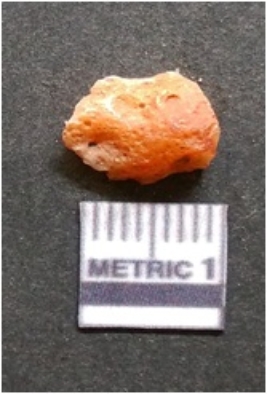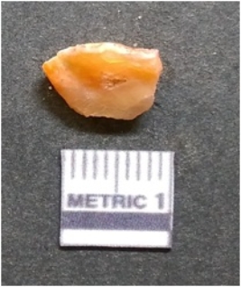 | Description / विवरण | It is chalcedony flake, translucent in appearance. The piece shows sharp pointed ends and flake scars on the surface as a result of flaking. The piece shows a bulb of percussion. |