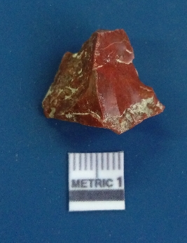 | Description / विवरण | The chert piece is dark in color, with a prominent bulb of percussion and sharp flaked edges. The piece is a part of lithic debitage or raw material for lithic knapping. The piece shows clear ripple marks and bulb of percussion. |