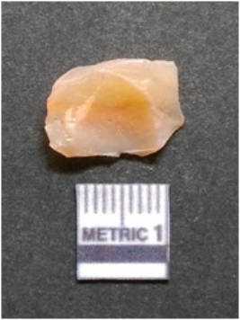 | Description / विवरण | It is chalcedony flake, translucent in appearance. The piece shows sharp pointed ends and flake scars on the surface as a result of flaking. The piece shows a bulb of percussion. |