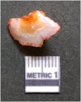 | Description / विवरण | It is chalcedony flake, translucent in appearance. The piece shows sharp pointed ends and flake scars on the surface as a result of flaking. The piece shows a bulb of percussion. |