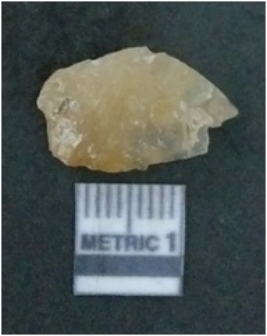| Description / विवरण | It is chalcedony flake, translucent in appearance. The piece shows sharp pointed ends and flake scars on the surface as a result of flaking. The piece shows a bulb of percussion. |