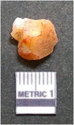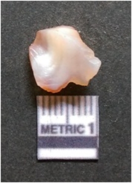 | Description / विवरण | It is chalcedony flake, translucent in appearance. The piece shows sharp pointed ends and flake scars on the surface as a result of flaking. The piece shows a bulb of percussion. |