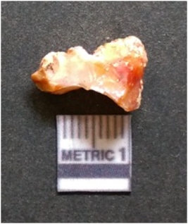 | Description / विवरण | It is chalcedony flake, translucent in appearance. The piece shows sharp pointed ends and flake scars on the surface as a result of flaking. The piece shows a bulb of percussion. |