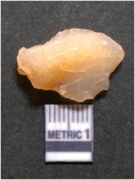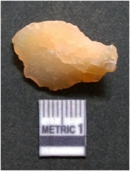 | Description / विवरण | It is chalcedony flake, translucent in appearance. The piece shows sharp pointed ends and flake scars on the surface as a result of flaking. The piece shows a bulb of percussion. |