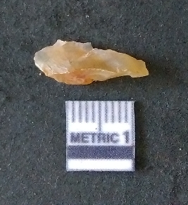| Description / विवरण | The chalcedony flake is pale yellow in color. Translucent in appurtenance. The piece is shows sharp pointed ends and flake scars on the surface. As a result of flaking. |