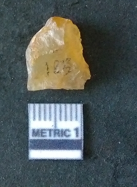| Description / विवरण | The chalcedony flake is pale yellow in color. Translucent in appurtenance. The piece is shows sharp pointed ends and flake scars on the surface. As a result of flaking. |