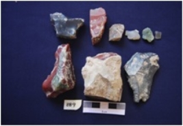 | Description / विवरण | Total No. of lithic debitage 9. Two Cores with flake scars, prepared platform and the rest are flakes, byproduct of tool manufacturing. |