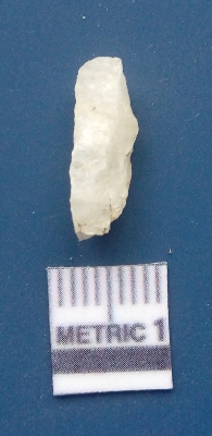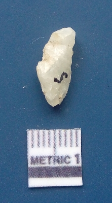 | Description / विवरण | The quartz flake has sharp flaked edges and pointed ends as a result of flaking. The piece is semi-transparent in nature with irregular fracture pattern. The piece is roughly triangular in shape and has a prominent bulb of percussion. |
