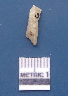| Description / विवरण | The quartz flake has sharp flaked edges and pointed ends as a result of flaking. The piece is semi-transparent in nature with irregular fracture pattern. The piece is roughly triangular in shape and has a prominent bulb of percussion. |