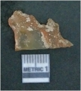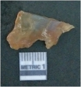 | Description / विवरण | It is chalcedony flake, translucent in appearance. The piece shows sharp pointed ends and flake scars on the surface as a result of flaking. The piece shows a bulb of percussion. |