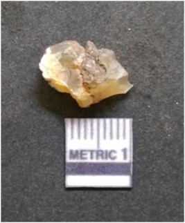 | Description / विवरण | The flake has irregular fracture pattern and sharp flaked edges as a result of lithic knapping activity. The piece is pale, with surfacial flake scars and a bulbous end. The flake is of smoky quartz variety, grayish in colour and translucent in appearance. |