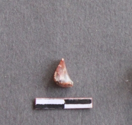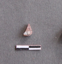 | Description / विवरण | This is a small fragment of reddish chert, roughly in the shape of a crescent. |