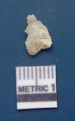 | Description / विवरण | The quartz flake has sharp flaked edges and pointed ends as a result of flaking. The piece is semi-transparent in nature with irregular fracture pattern. The piece is roughly triangular in shape and has a prominent bulb of percussion. |