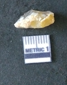 | Description / विवरण | The chalcedony flake is pale yellow in color. Translucent in appurtenance. The piece is shows sharp pointed ends and flake scars on the surface. As a result of flaking. |