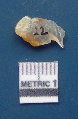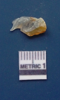 | Description / विवरण | It is chalcedony flake, translucent in appearance. The piece shows sharp pointed ends and flake scars on the surface as a result of flaking. The piece shows a bulb of percussion. |