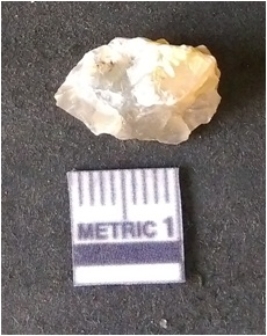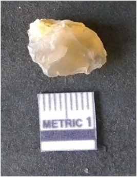 | Description / विवरण | It is chalcedony flake, translucent in appearance. The piece shows sharp pointed ends and flake scars on the surface as a result of flaking. The piece shows a bulb of percussion. |