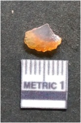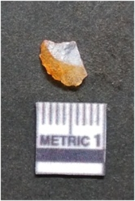 | Description / विवरण | It is chalcedony flake, translucent in appearance. The piece shows sharp pointed ends and flake scars on the surface as a result of flaking. The piece shows a bulb of percussion. |