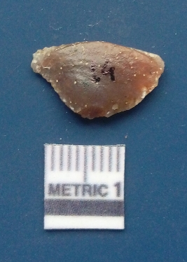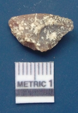 | Description / विवरण | It is chalcedony flake, translucent in appearance. The piece shows sharp pointed ends and flake scars on the surface as a result of flaking. The piece shows a bulb of percussion. |