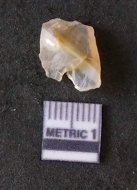 | Description / विवरण | The chalcedony flake is pale yellow in color. Translucent in appurtenance. The piece is shows sharp pointed ends and flake scars on the surface. As a result of flaking. |