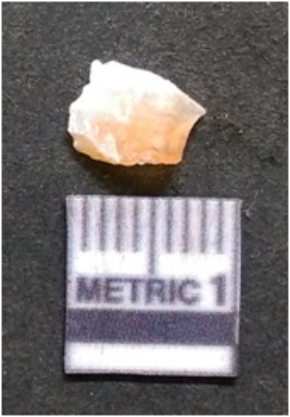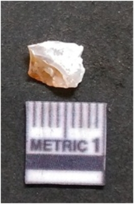 | Description / विवरण | It is chalcedony flake, translucent in appearance. The piece shows sharp pointed ends and flake scars on the surface as a result of flaking. The piece shows a bulb of percussion. |