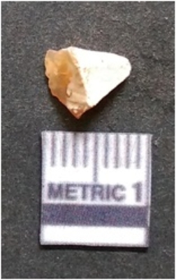 | Description / विवरण | It is chalcedony flake, translucent in appearance. The piece shows sharp pointed ends and flake scars on the surface as a result of flaking. The piece shows a bulb of percussion. |